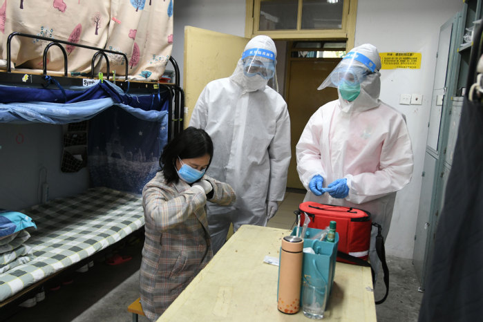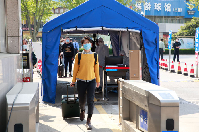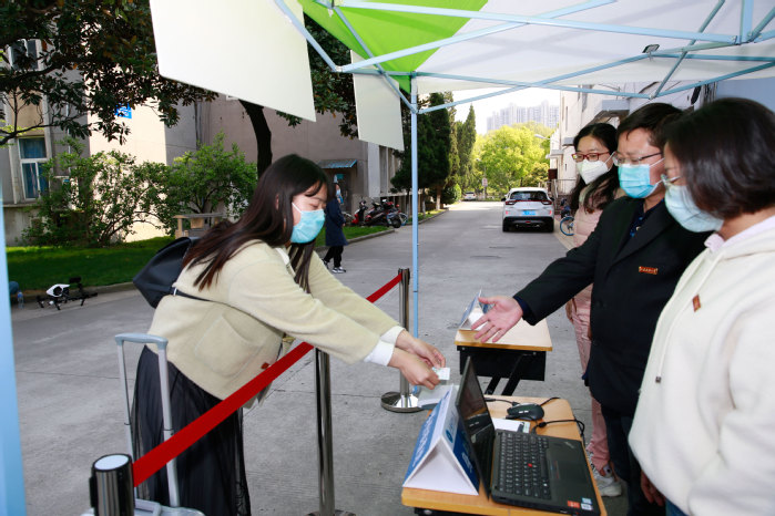 “德赢AC米兰官网疫情防控演练开始。” 4月15日下午14:30,随着校领导一声令下,一队辅导员扮演的返校学生统一佩戴口罩,保持安全距离,有序通过校门口测温点。随后听从引导进入身份证和苏康码查验点,完成“一测二查三核”流程后进入校园,步行至宿舍区大门处接受第二次测温,再凭借校园卡刷卡通关进入宿舍。