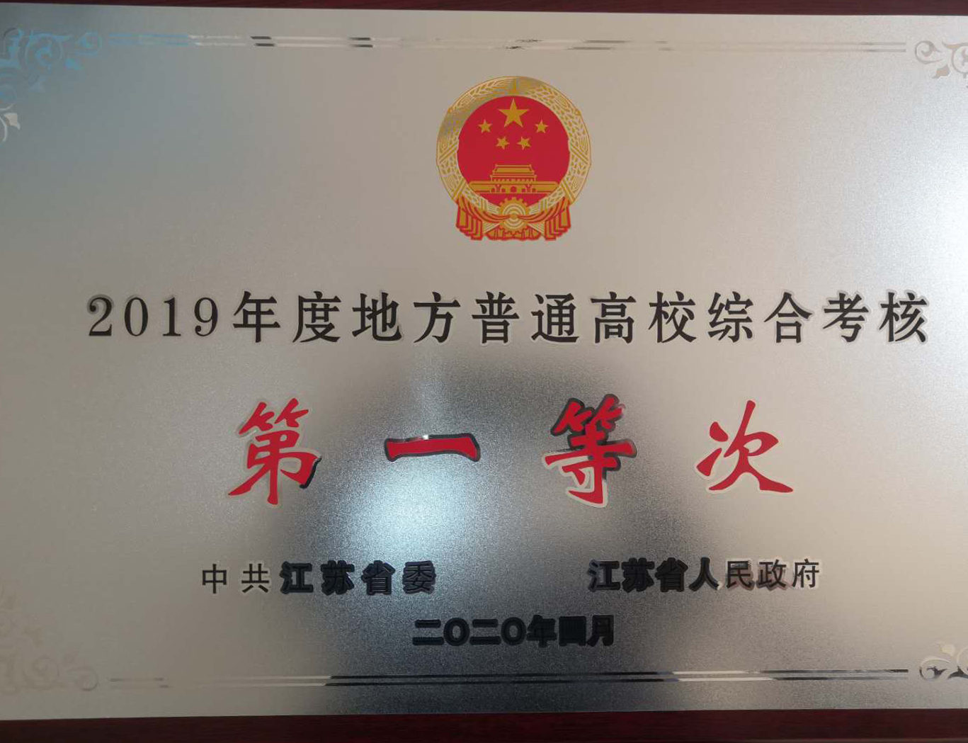德赢AC米兰官网荣获江苏省2019年度地方普通高校综合考核第一等次