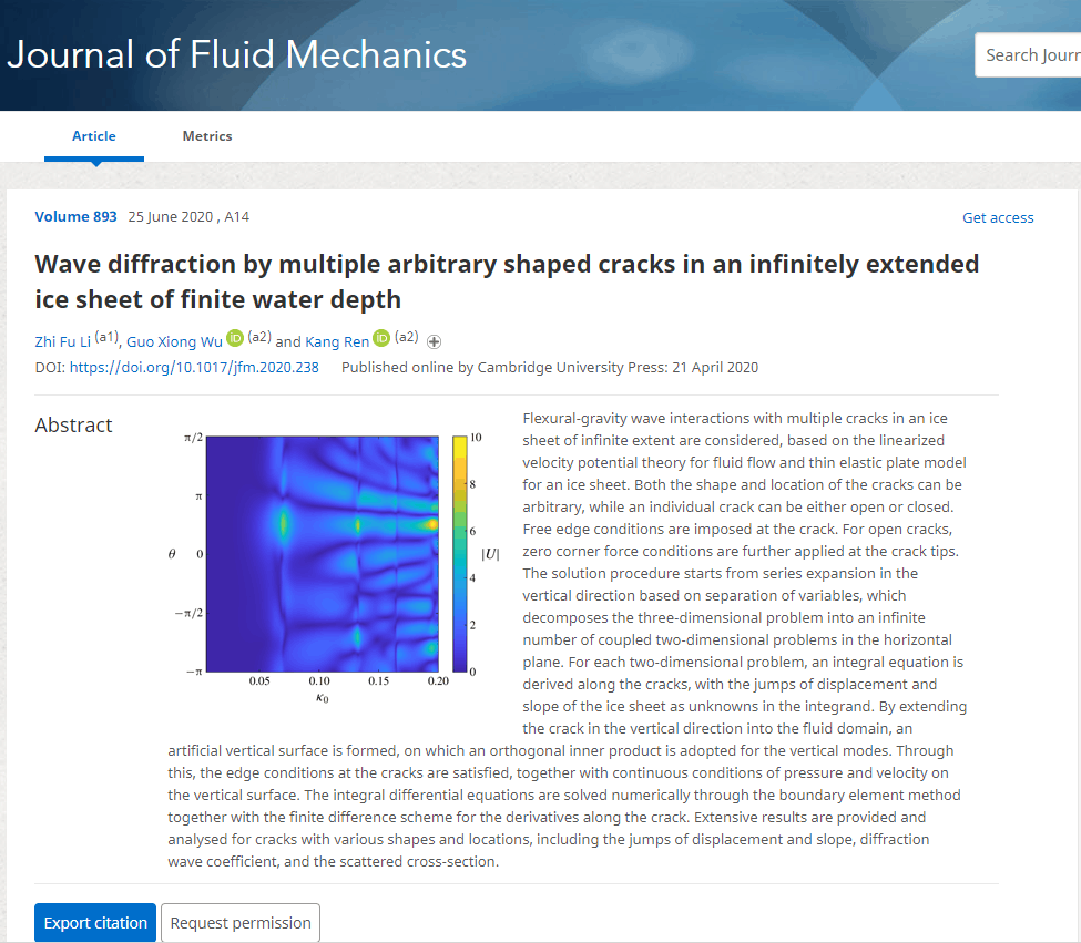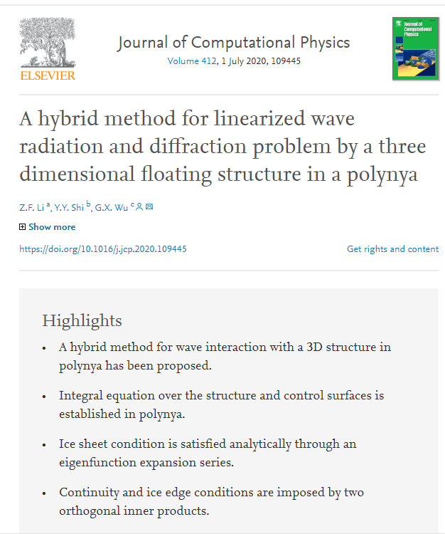 近日,流体力学领域顶级期刊《流体力学》(Journal of Fluid Mechanics)和计算流体力学领域著名期刊《计算物理》(Journal of Computational Physics)分别在线发表了德赢AC米兰官网李志富副教授为第一作者的冰区水动力学研究成果。