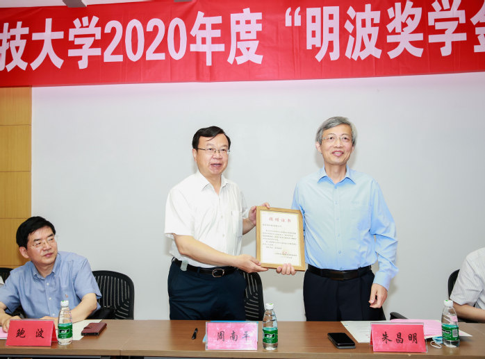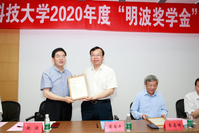 5月25日上午,学校在东校区举行2020年“明波奖学金”颁奖仪式,奖学金设立人、德赢官网1983届杰出校友朱昌明和鲍波亲临颁奖现场,校长周南平、副校长汤建出席颁奖仪式,颁奖仪式由对外合作处处长佘建国主持。