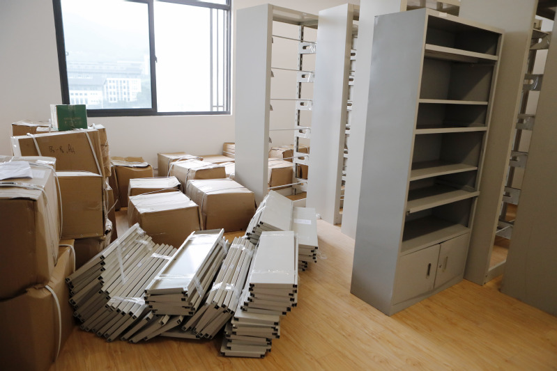 在新校区,土建学院的5楼主要是团队为主分配用房,没有教授工作室,潘志宏说,“学院基本还是按功能来布局,希望能最大化利用有限的办公用房。”在现场,建筑系已经搬迁到位,教职工正在整理物品,学院的图书资料室、阅览室的书架都已摆放到位,接下来就是书籍上架等后续琐碎的整理工作。