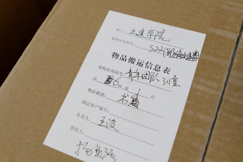刘清生介绍,7点至9点是上班高峰,下午4点后有些路段禁止大卡车通行。为了最大化利用时间,错开上班高峰,搬迁人员6点前来到了南校区学院楼,将第一批物品打包装车,以便搬家公司在7点前发车将物品运往新校区。中午,大家用完午餐后都没顾得上休息就继续搬迁。