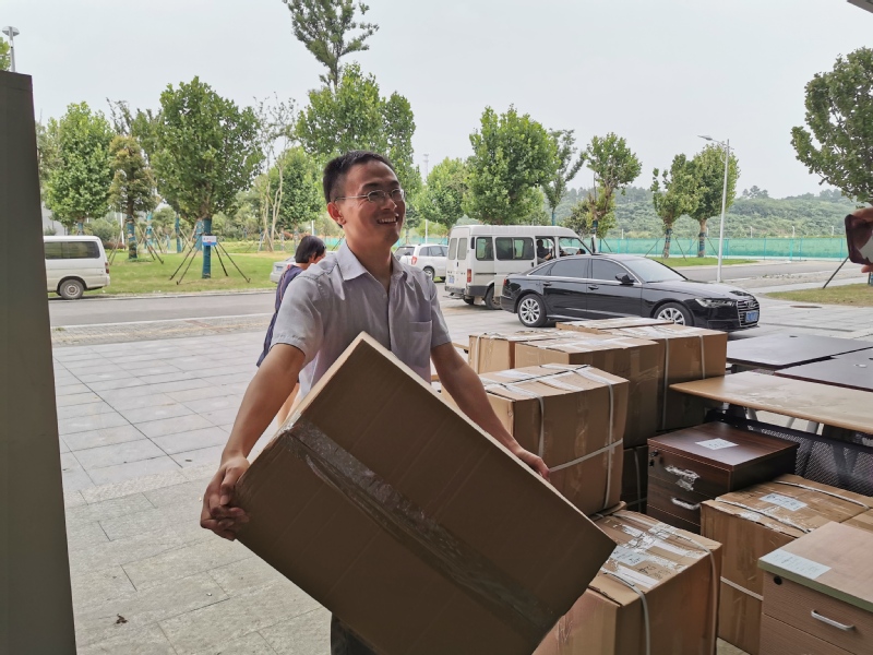 搬迁现场,随处可见土建人忙碌的身影。钢结构团队的刘亭亭老师5月份刚入职就赶上了学院搬迁,她主要负责签收桌椅、电脑等,与同事们忙得不亦乐乎,她告诉记者,新校区很大,背靠十里长山,环境优美,学院的研究方向与自己的专业很契合,对未来充满信心。