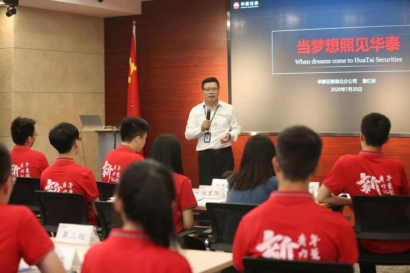 转角的精彩人生从此开始。袁红彬最初是在华泰证券镇江营业部办公室担任主任助理,2003年调至华泰证券总部工作,2008年任华泰证券南京草场门营业部总经理,2009年任华泰证券无锡永乐路营业部总经理,2014年任华泰证券镇江分公司总经理,2019年任华泰证券湖北分公司总经理。2021年9月至今,任华泰证券常州分公司总经理。当记者谈起如何面对工作中的新挑战时,他笑着说:“最重要的是要坚定信念、转变思维、提升能力;要持续学习、整合资源,认准目标、明确路径、找对方法、呈现结果;要敢于担当、不惧挫折、勇往直前。”