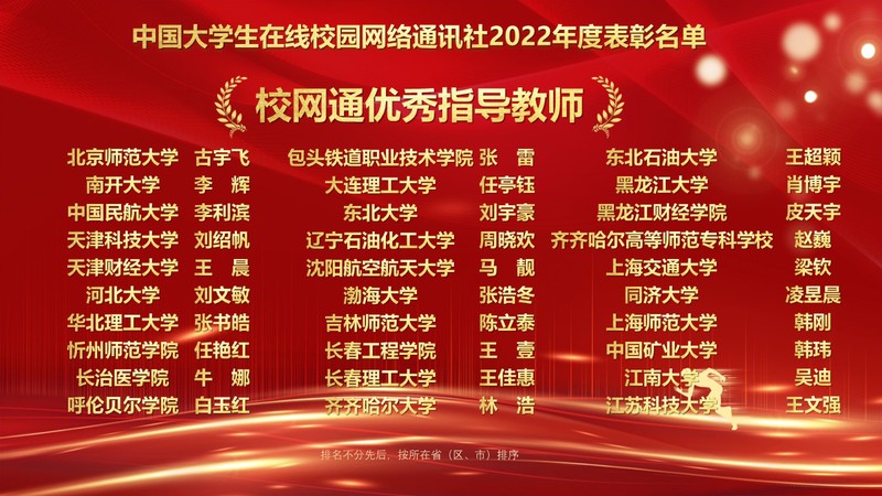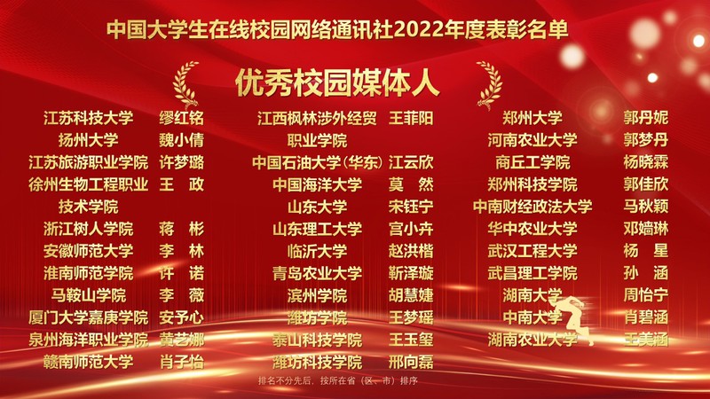 1月10日,教育部中国大学生在线“2022校园号建设暨校网通工作年会”在北京召开,会议对2022年校园网络通讯站及校园行活动进行了表彰,来自全国高校的指导教师和学生代表线上参会。德赢官网党委宣传部融媒体中心校园网络通讯站从全国600余个校园网络通讯站中脱颖而出,荣获“优秀校园网络通讯站”、校园行活动“优秀组织单位”,党委宣传部王文强老师荣获“优秀指导教师”,缪红铭同学荣获“优秀校园媒体人”称号。