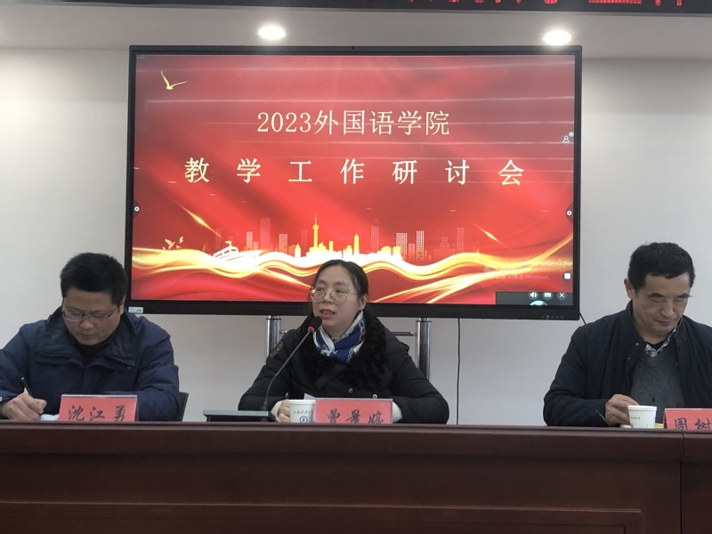 为进一步深化本科教育教学改革,抓好重点工作落实,切实推进学院教学工作,全面提升教学质量和育人水平,2月15日,外国语学院采用线上线下相结合的方式,在长山校区外国语学院学术报告厅举办了2023年教学工作研讨会。大会邀请教务处处长田剑、副处长沈江勇、南京林业大学肖飞教授,外国语学院领导班子和全体教职工参加会议,会议由副院长周树军主持。