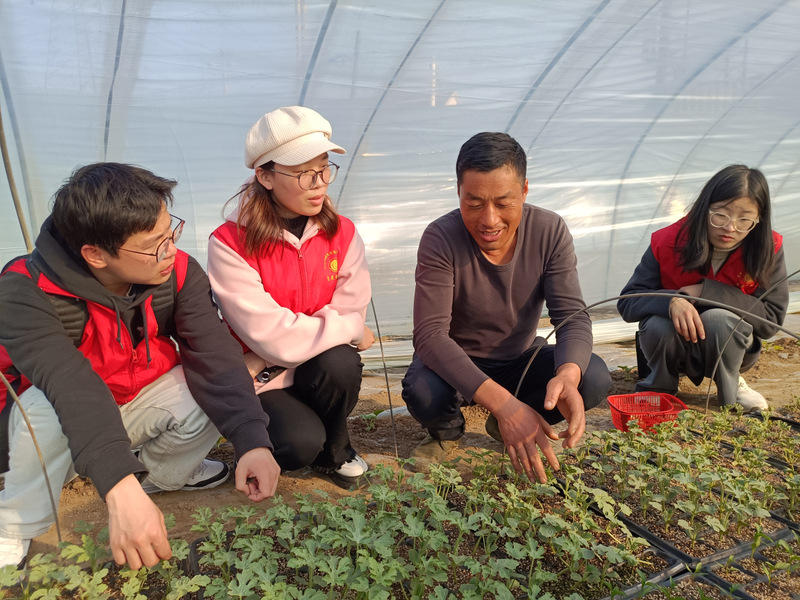 在种植大棚,农户还给志愿者们普及了草莓、西瓜、香瓜、辣椒等一系列水果、蔬菜育苗和移栽技术。在这里,同学们通过田间地头的学习,“深读研究”种植技术和田间管理技术,将理论与实践相结合。