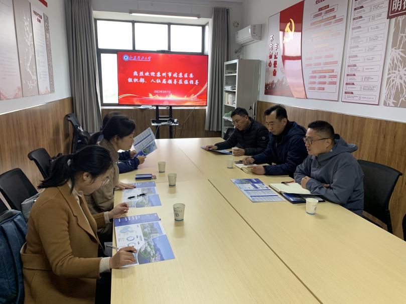 会上重点讨论了进校推介会、招聘会,就“泰爱才”“镇爱才”探讨推荐经验,探讨招聘现场的流程安排,通过政府、城市推介会,促进校企对接成立实习基地。姑苏区人社局王斌强调,目前正值春招高峰,招聘引才节奏很快,地方和学校可以共同探索解决教育人才培养和产业需求存在的错位问题,以人才发展引领产业转型升级,以产业迭代引导高等教育改革发展。束鑫老师表示,希望进一步深化校地企合作,加强专业教师与行业人员的交流,通过学科专业技术领域发展提高学校人才培养质量。