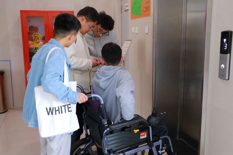 因为要等父亲背送,陈帆上课时总是坐在最后一排,时间长了,他注意到有五个同学也爱坐最后一排。这些因缘而聚的同龄年轻人,怀着善意与友爱,在一来二去的交往中慢慢熟络起来。“开学的时候我去帮陈帆搬书,在我看来这真的是件小事,但陈帆第二天还特地给我买了一杯奶茶表达感谢,反倒是把我给感动坏了”,说起相识的契机,王胤凯感叹到,其实并没有什么刻意为之,他们注意到陈帆活动上的不便,力所能及地帮助他,而陈帆的和善真诚,令大家的关系愈加融洽。一些热心肠、一点真情意,美丽的故事便这样自然而然地发生了。