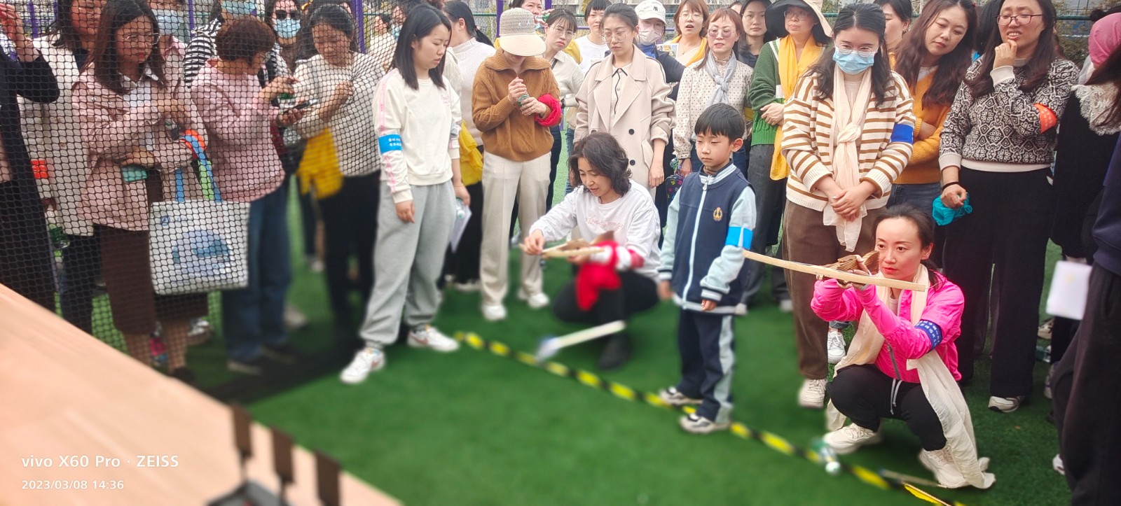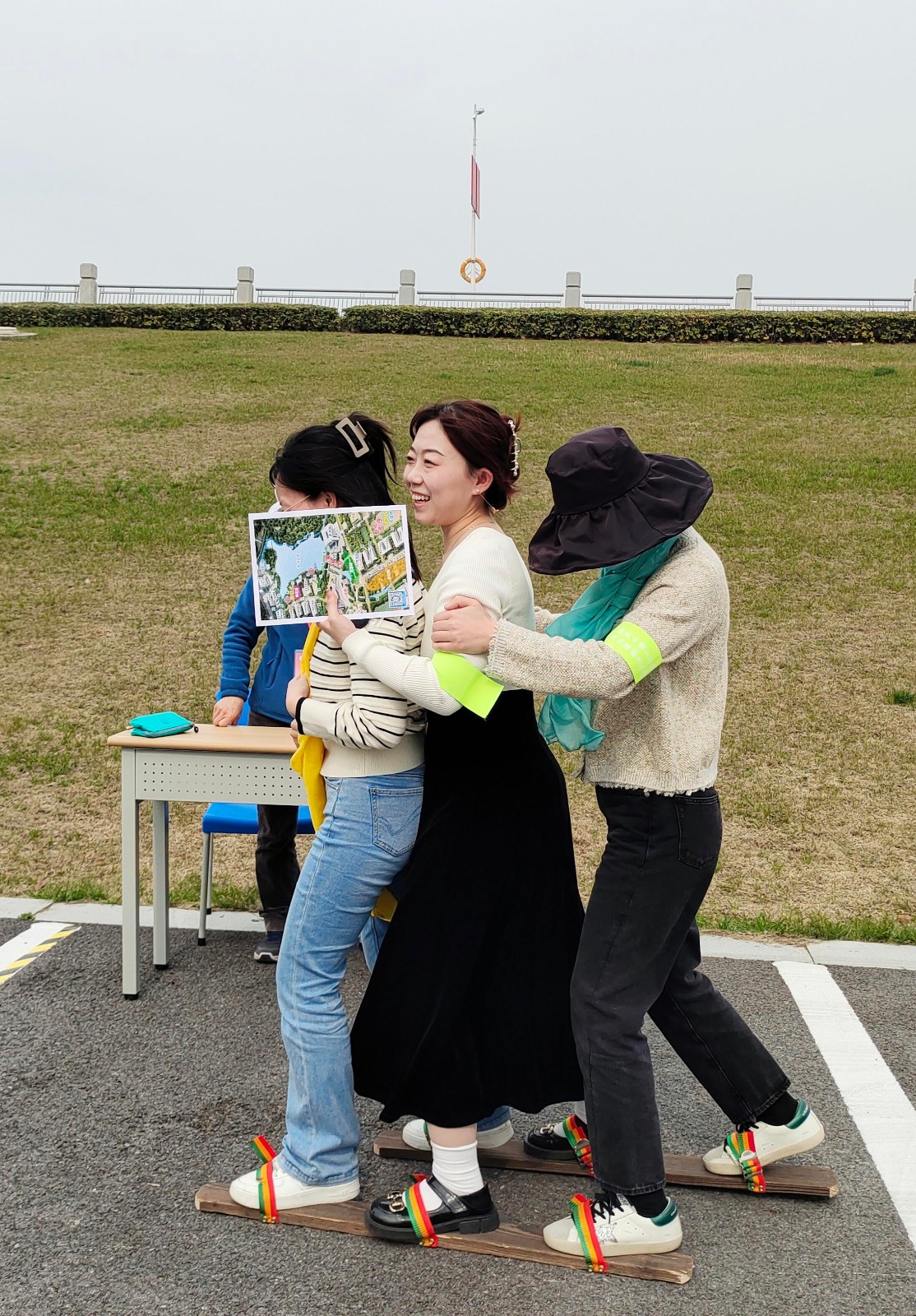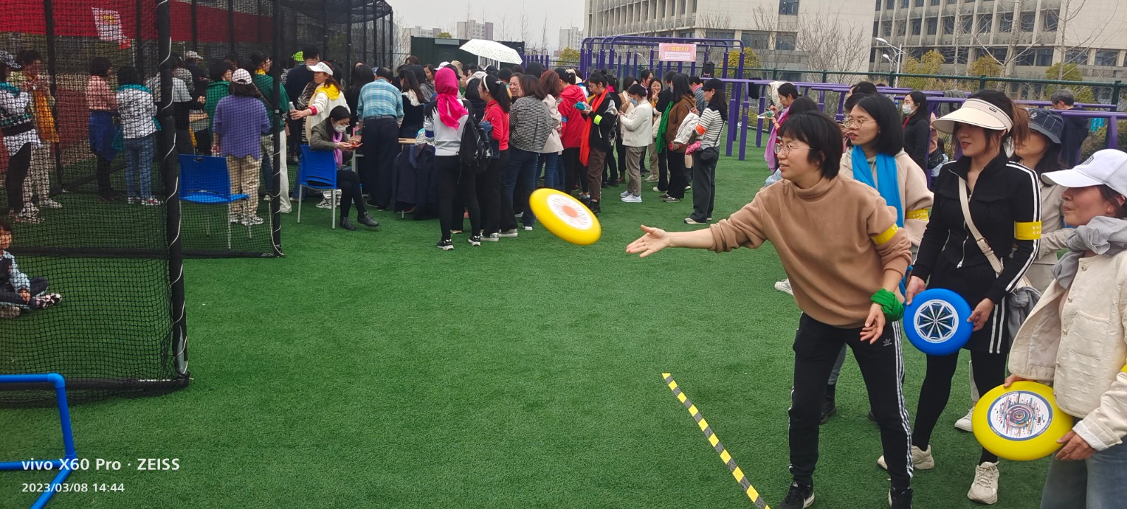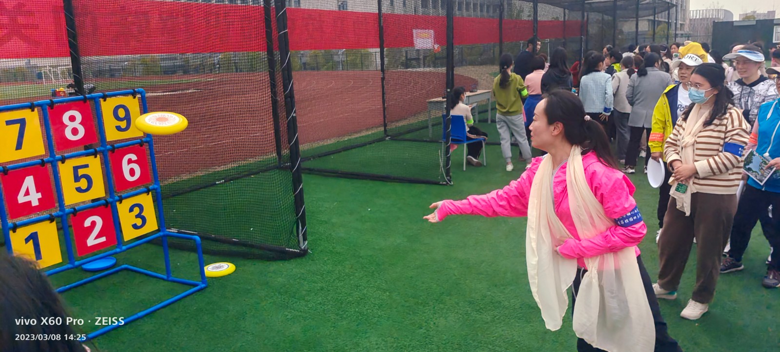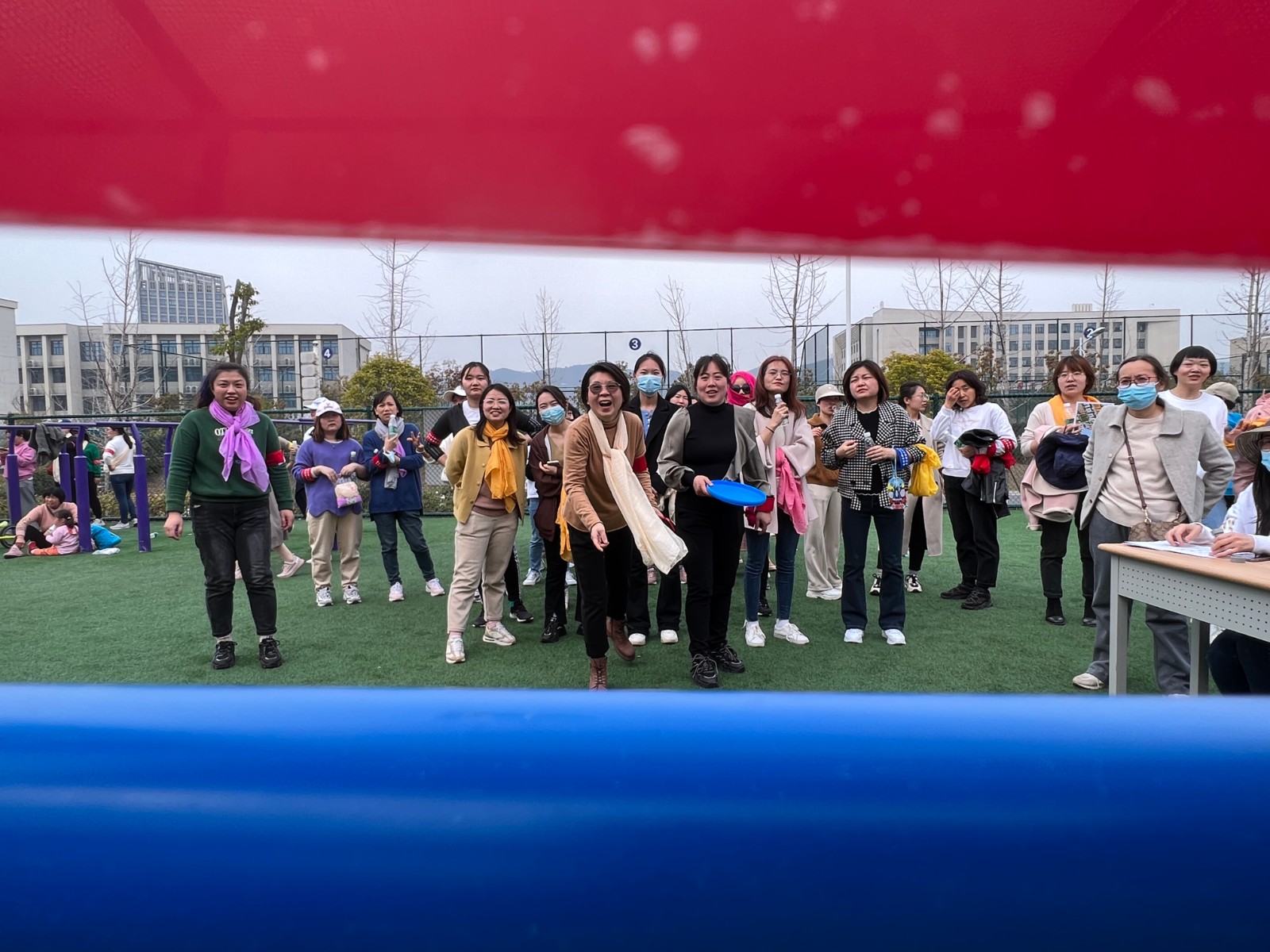 “丝韵流芳”要求3名队员各选一条丝巾,完成不同的系法并合影;“同舟共济”需要队员穿同舟共济木板鞋,走完规定路线;“砥砺前行”环节队员手牵手,不穿鞋从趾压板上共同走过,手均触到校标;“巾帼射手”“飞盘丽影”“重回童梦”……九个关卡九重考验,比的是智慧,赛的是体能,竞的是合作。活动现场高潮迭起,气氛热烈而紧张,场内的欢呼声、欢笑声、鼓掌声、喝彩声不断,大家沉浸在节日的快乐氛围中,收获满满,幸福满满。