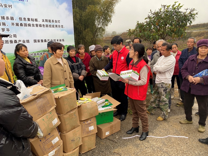 在保种育种的基础上,德赢AC米兰官网蚕桑科技支农实践团足迹遍布江苏苏北蚕区、广西平果和德保蚕区,向当地蚕农介绍规范的饲养和消毒方法,并赠送研究所培育的针对广西高温多湿气候环境的优质蚕种和蚕药。