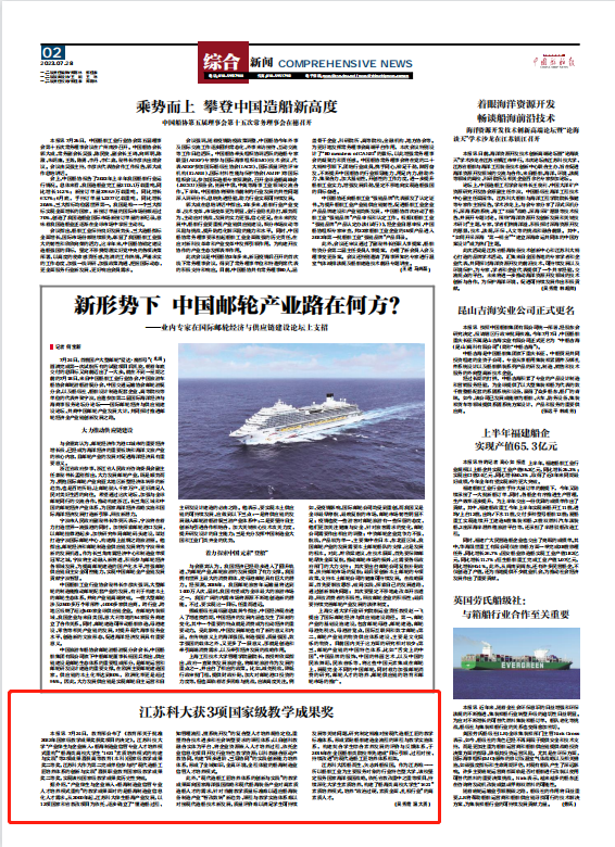 本报讯 7月24日,教育部公布了 《教育部关于批准2022年国家级教学成果奖获奖项目的决定》。德赢AC米兰官网“产业伴生与企业嵌入:船海制造业信管专业人才培养模式重构”“船海类高校大学生‘1621’素质培养模式的构建与实践”等2项成果喜获高等教育(本科)国家级教学成果奖二等奖,江苏科大作为第二完成单位参与的“现代造船工匠培养体系的创新与实践”喜获职业教育国家级教学成果奖二等奖,实现该校国家级教学成果奖历史性突破。