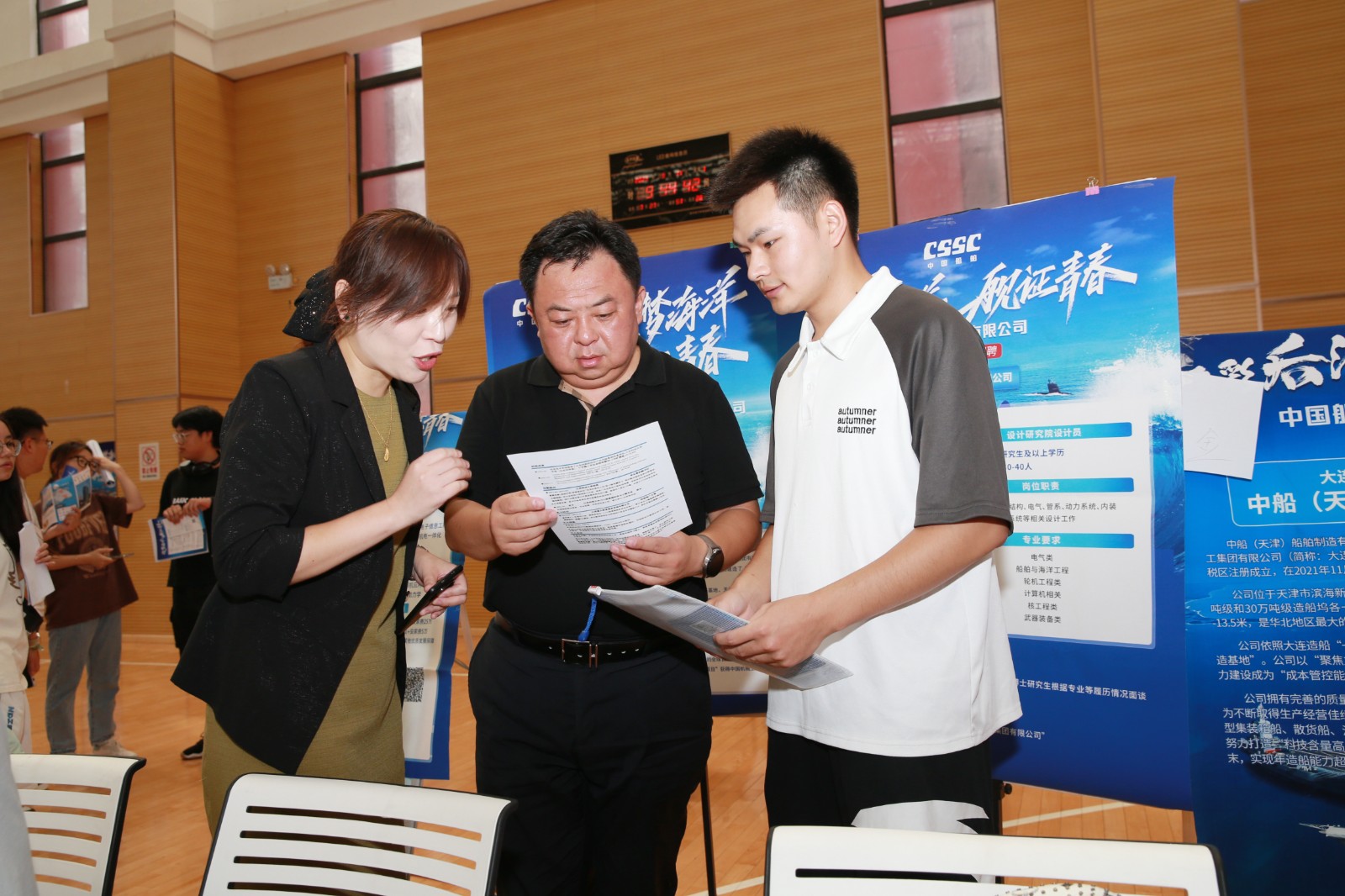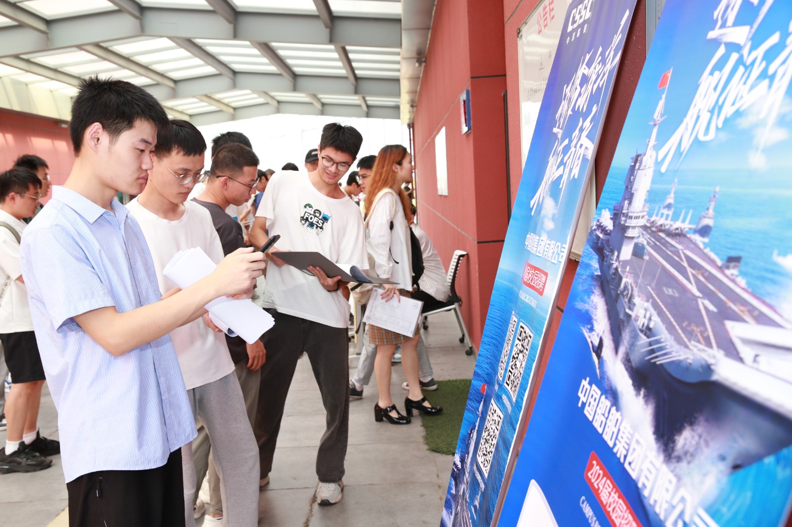本次招聘会共54家用人单位参会,专业需求覆盖各个学院,吸引了近4000名应届毕业生前来挑选岗位。同学们积极与用人单位代表交流,踊跃投递简历,407名毕业生现场达成了初步就业意向。招聘会前期,各学院主动与企业对接,广船国际、沪东中华、黄埔文冲、第七〇八研究所等单位向重点需求专业的学生做宣讲,宣讲会有效搭建了单位与毕业生们之间的交流平台,“德赢AC米兰官网的培养方向和我们企业需求相匹配,学生专业基础扎实,培养潜力大。学生们投递热情也很高,已经收到了一百来份简历。”中船黄埔文冲船舶有限公司人力资源部赵李君介绍道。