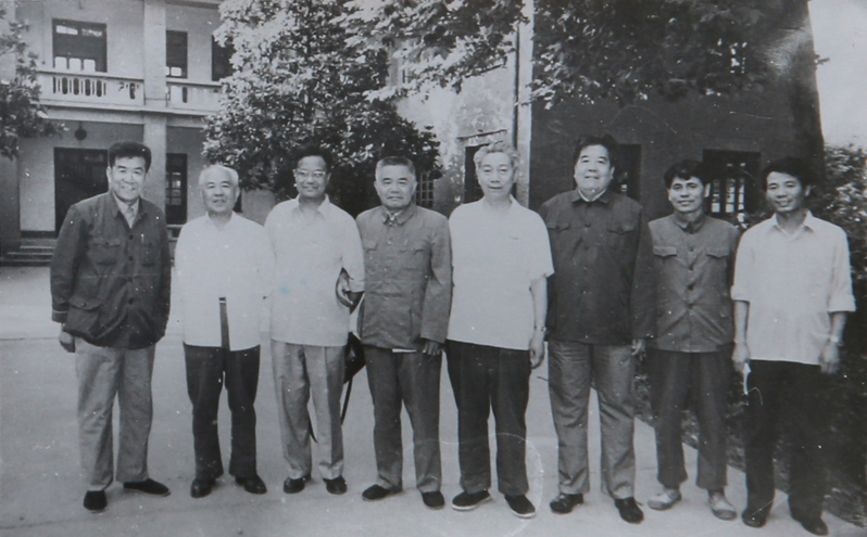 1982年6月,中船总公司领导和学院领导合影(左一刘东明、左三杨槱、左五肖流)