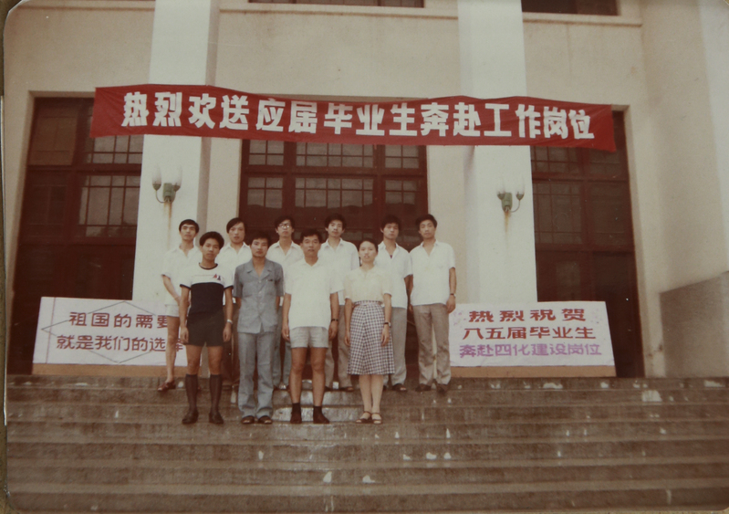 1985年7月,镇江船舶学院欢送85届学生奔赴工作岗位(摄于大礼堂外)