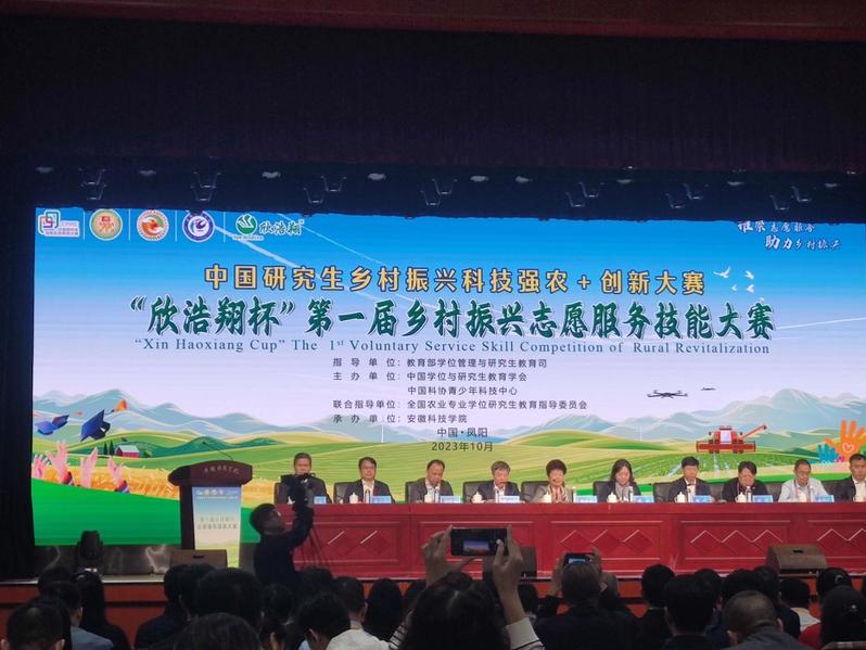 10月27日至30日,中国研究生乡村振兴科技强农+创新大赛“欣浩翔杯”第一届乡村振兴志愿服务技能大赛决赛在安徽科技学院凤阳校区举行,来自45所高校或研究生培养单位的113支团队齐聚古城凤阳,竞相展示青年研究生投身乡村振兴火热实践的风采。中国学位与研究生教育学会副会长张淑林教授,全国农业专业学位研究生教育指导委员会秘书长、中国农业大学研究生院常务副院长郭鑫教授出席了大赛开幕式,德赢官网李木旺副校长应邀出席比赛开幕式。