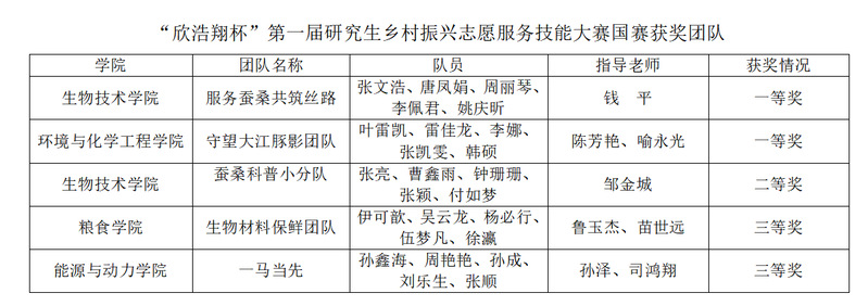 本届大赛以“志愿服务助力乡村振兴,青年成长开创美好未来”为宗旨,鼓励引导研究生关注农业农村发展,涵养青年学生家国情怀,勇于担当强农兴农使命,着力书写时代之志,助力“新农村、新农业、新农民、新生态”建设,勇于创新、勤于实践,把“小我”融入“大我”,为乡村振兴和中华民族的伟大复兴贡献青春力量。大赛共有来自全国100余所研究生培养高校及科研院所的846支队伍报名参赛,经过校赛、专家函评,共有279支队伍晋级全国总决赛,共产生一等奖28项,二等奖85项,三等奖166项。