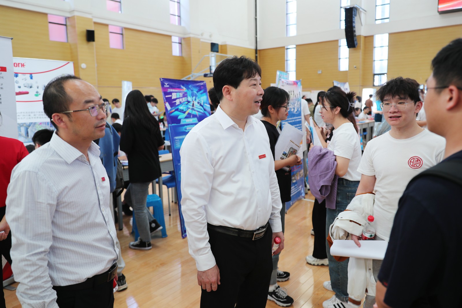 此次招聘会由江苏省教育厅、江苏省人力资源和社会保障厅主办,江苏省高校招生就业指导服务中心、江苏省劳动就业管理中心、江苏省职业介绍中心、德赢AC米兰官网承办,共有181家企事业单位参会,涵盖新能源新材料、高新制造、生物化工及信息软件等多个行业,岗位需求人数8000余人,与德赢官网各学科专业相匹配,呈现出单位质量高、岗位多样化的特点。其中,央企国企、上市公司及高新技术等高质量用人单位超过80%。本次招聘会是在充分深入调研获悉企业高校引才需求后迅速策划组织的一次招聘活动,活动践行江苏省制造业高端化、智能化、绿色化发展战略,结合镇江地区高校毕业生就业实际,针对能源动力工程、新能源科学与工程、机械工程、材料工程等学科专业深入挖掘企业揽才需求,联动高校、地方相关产业部门等协同发力,汇聚众多名企踊跃参与,精准扩容优质岗位“蓄水池”。招聘会期间,胡爱祥与用人单位和毕业生亲切交流,详细了解企业用工需求和毕业生求职就业情况。