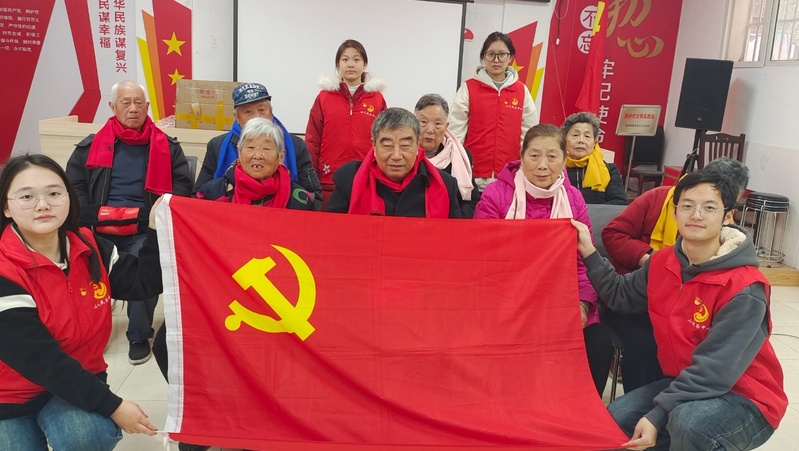 图为学生党员志愿者与老人们合影留念 王莹 供图