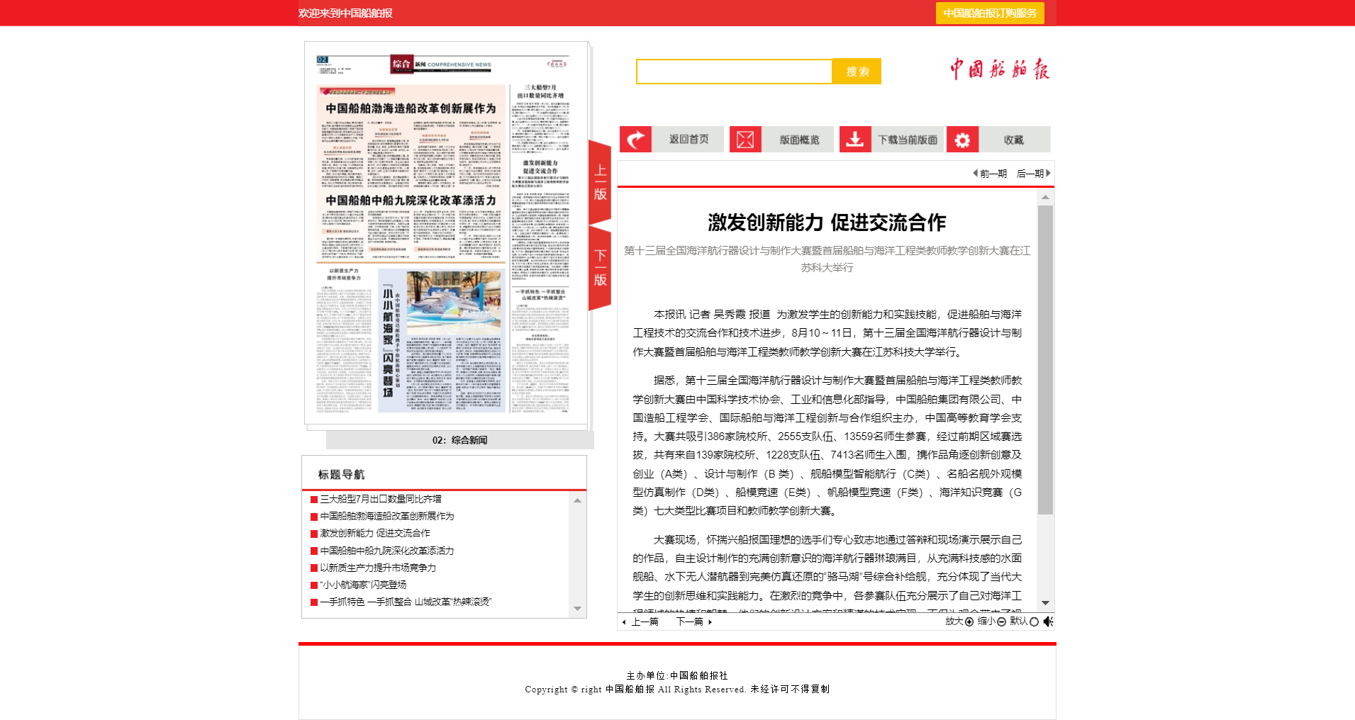据悉,第十三届全国海洋航行器设计与制作大赛暨首届船舶与海洋工程类教师教学创新大赛由中国科学技术协会、工业和信息化部指导,中国船舶集团有限公司、中国造船工程学会、国际船舶与海洋工程创新与合作组织主办,中国高等教育学会支持。大赛共吸引386家院校所、2555支队伍、13559名师生参赛,经过前期区域赛选拔,共有来自139家院校所、1228支队伍、7413名师生入围,携作品角逐创新创意及创业(A类)、设计与制作(B 类)、舰船模型智能航行(C类)、名船名舰外观模型仿真制作(D类)、船模竞速(E类)、帆船模型竞速(F类)、海洋知识竞赛(G类)七大类型比赛项目和教师教学创新大赛。