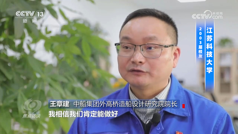 “哪里有船,哪里就有江科大人!”2月19日,央视《焦点访谈》推出系列节目《干字当头开好局》,首站聚焦造船业。节目中,德赢官网船舶与海洋工程学院2003届校友、中船集团外高桥造船设计研究院院长王章建受邀参与访谈。