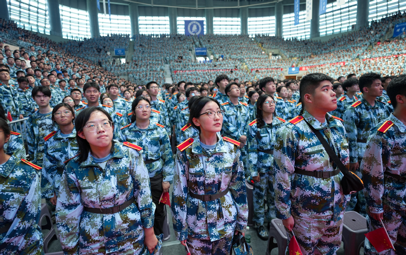 在高昂的校歌声中,开学典礼落下帷幕。愿2025级新生高举精神火炬,既怀鸿鹄之志,又葆跬步之恒,以青春之我担时代之责,将个人理想熔铸于民族复兴的伟业中,从此处启程,向山海奔赴,让奋斗成为最鲜亮的青春底色。