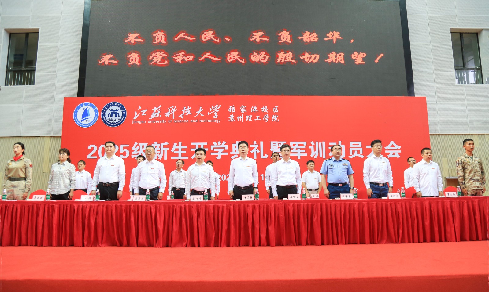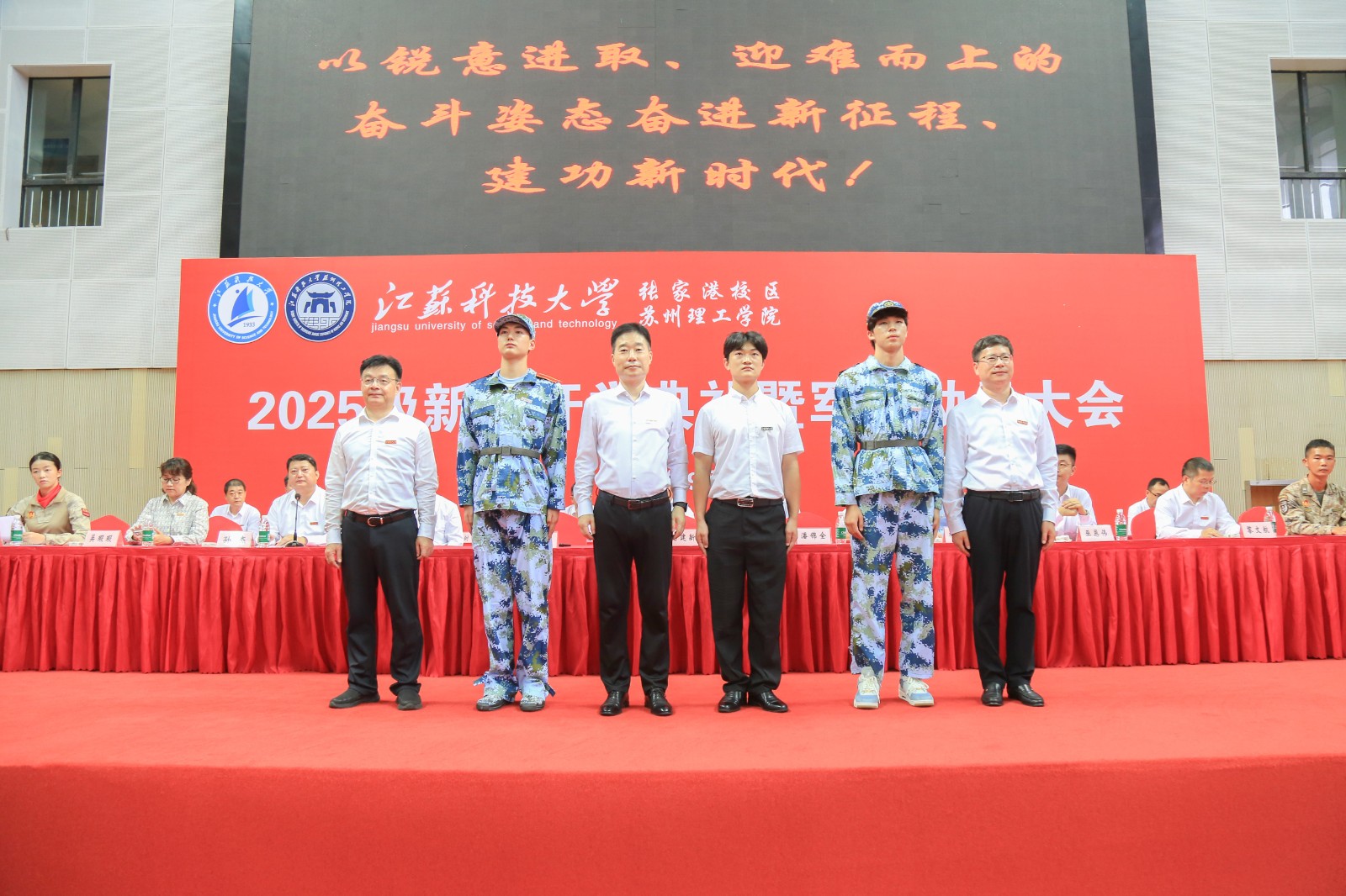 9月17日,德赢AC米兰官网张家港校区、苏州理工学院2025级新生开学典礼暨军训动员大会在张家港校区体育馆隆重举行。德赢AC米兰官网党委书记杨建新,校党委常委、副校长潘锦全,校党委常委、组织部部长、张家港校区及苏州理工学院党委书记李恒川,校区、苏理工领导班子,各部门和学院负责人及新生班导师等出席活动。校区、苏理工2025级全体新生参加典礼。大会由校区管委会副主任、苏理工副院长孙杰主持。