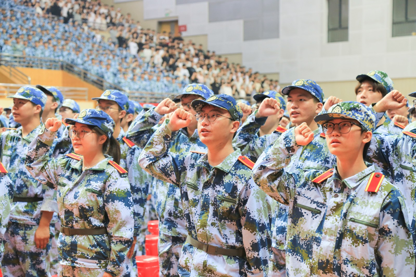 伴随着诗朗诵《迎接新的辉煌》铿锵的韵律,一句句坚毅、热情、质朴的话语点燃了同学们心中的理想与斗志。全体新生庄严宣誓:遵纪守法、诚实守信;笃学明德,奋发图强;志存高远,追求卓越;自加压力,奋勇争先!