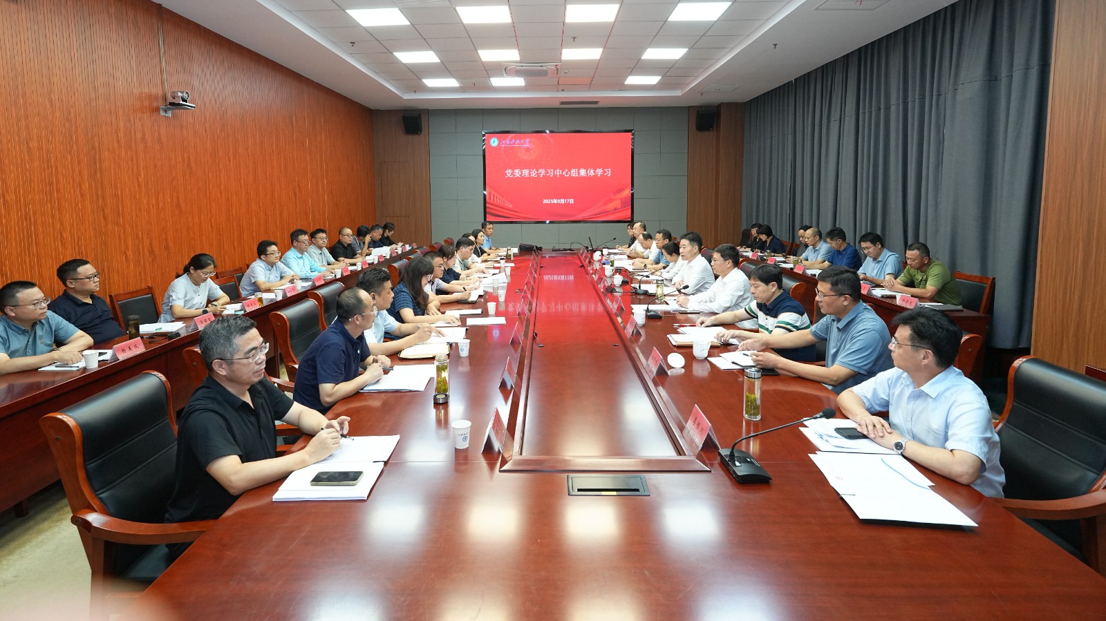 日前,学校党委理论学习中心组集体学习(扩大)会在行政楼200号会议室召开,围绕学习贯彻习近平总书记在纪念中国人民抗日战争暨世界反法西斯战争胜利80周年大会上的重要讲话精神开展交流研讨。校党委理论学习中心组成员参会学习,相关职能部门负责人、各二级党组织书记列席。校党委书记杨建新主持会议并作总结讲话。