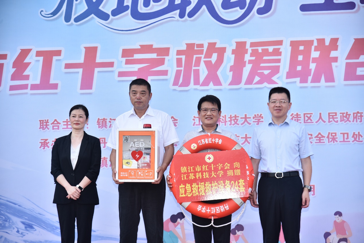 揭牌仪式上,胡爱祥首先发表热情洋溢的致辞。他指出,联合基地的建立是校地共建、资源整合的又一里程碑式成果,标志着学校与镇江市红十字会的合作迈入深度融合的新阶段。基地将充分依托学校长山校区的地理位置优势,以及在海洋装备、应急救援、公共安全等领域的学科科研与人才储备优势,精准整合市、区红十字会的专业救援力量与实践经验,着力打造一个集培训、演练、救援、科普于一体的综合性应急救援平台。这一平台的搭建,将有效提升区域应急救援救护的专业化水平,为校园师生及周边社区群众筑牢生命安全的“防护网”。