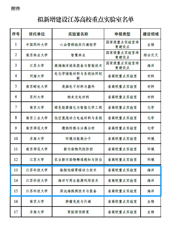 近日,江苏省教育厅公布《江苏高校重点实验室新增建设名单》(苏教科函〔2025〕21号)。全省共新增建设42个江苏高校重点实验室,德赢官网获批立项建设“船舶低碳零碳动力技术实验室”“海洋可再生能源利用技术实验室”“深远海探测技术与装备实验室”等3个重点实验室,获批数量并列全省第一。
