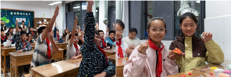 粮食节约,人人有责,德赢AC米兰官网学子积极用行动宣传节约粮食精神,凝练“食育科普”系列微课,深入小学与社区,打造实践育人课堂。在镇江市实验小学官塘分校,志愿者团队开展“食育种子”计划:通过“一粥一饭,来之不易”“世界各国代表性美食”等动画短片,生动讲解粮食从田间种植到餐桌食用的全过程;组织粘土创意实践活动等趣味游戏,孩子们化身“小小美食家”,在志愿者的指导下,用五彩粘土捏制米饭、面条、蔬菜、面包等各类食物。用童趣作品传递节约理念,将粮食安全的种子播撒进少年儿童心中。