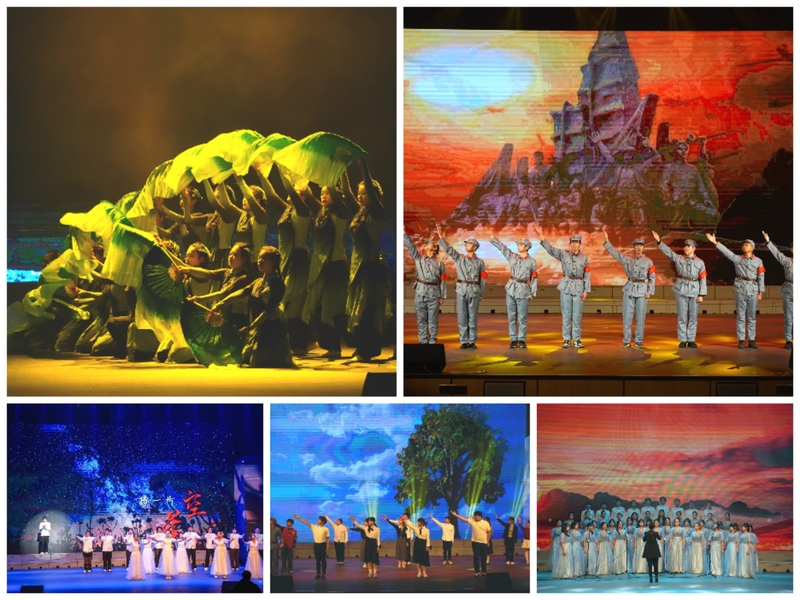 第三篇章“云驰·星河逐梦”汇聚国风与青春交融之美。大学生艺术团流行乐团、合唱团及经济管理学院等联袂呈现国风盛典《天地龙鳞》,歌曲承载着历史的厚重感与民族复兴的壮志豪情,与融合非遗技艺和现代设计的华服相得益彰,尽显中华文明之美;新晔戏剧团带来朗诵《逐梦深蓝,我们正青春》,以铿锵之声将青春誓言锻造成一曲献给深蓝的壮丽诗篇;舞蹈团演绎舞蹈《红色之恋》,以鲜明的红色主题致敬革命岁月,传递信仰力量;合唱团演唱的《星辰大海》,让观众在歌声中沉浸式感受如星辰般璀璨、如大海般澎湃的希望力量。晚会尾声,合唱团、舞蹈团、吉他协会与外国语学院等联袂呈现歌舞《想要的一定实现》,将现场氛围推向高潮,为整场晚会画上圆满句号。