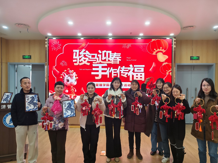 经济管理学院举办“骏马迎春,手作传福”手工DIY活动,教职工们沉浸于织锦拼贴、中国结编织、陶瓷画创作之中。一幅幅融合马年元素的拼贴画创意纷呈,一个个寓意团圆的中国结指尖成型,一件件绘有吉祥图案的陶瓷作品寄托美好,大家在专注创作中领略传统之美,在欢声笑语中互道新年祝愿。