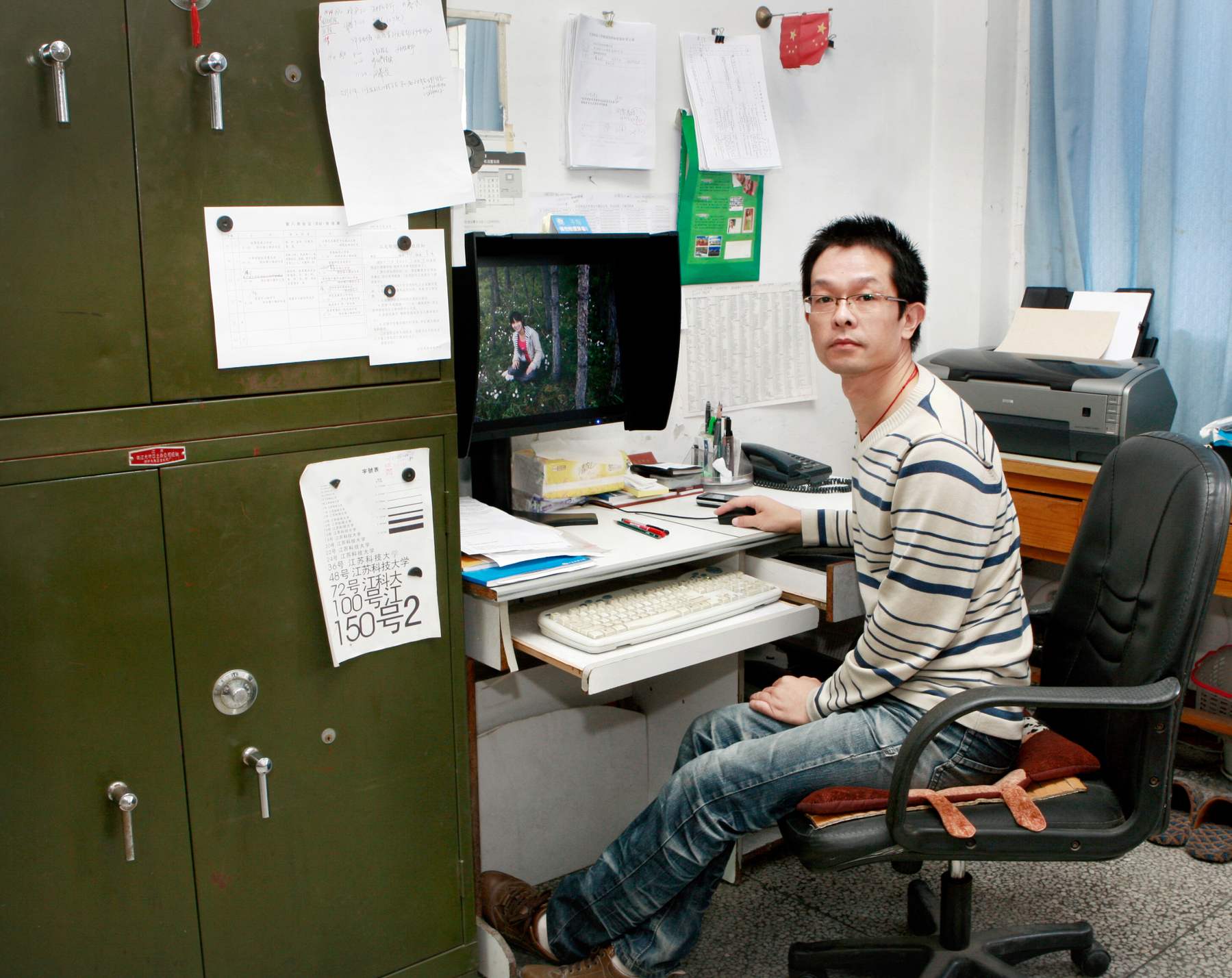 “从前的条件没有现在便利,学校搞活动,我们需要自己动手做横幅,字是先写在纸上,写好后再裁剪粘贴在红布上,一个字有半个人高,这可是个体力活。”其实新闻摄影也是个体力活,吴强对待每一次拍摄都精益求精,所以直到现在还保持着精干的身形,“作为共产党员,我应该为其他人做出表率。现在我是从事新闻摄影工作,那么首要任务就是拍好照片,把江科大的点点滴滴记录下来,把江科大最美的瞬间留存下来。”