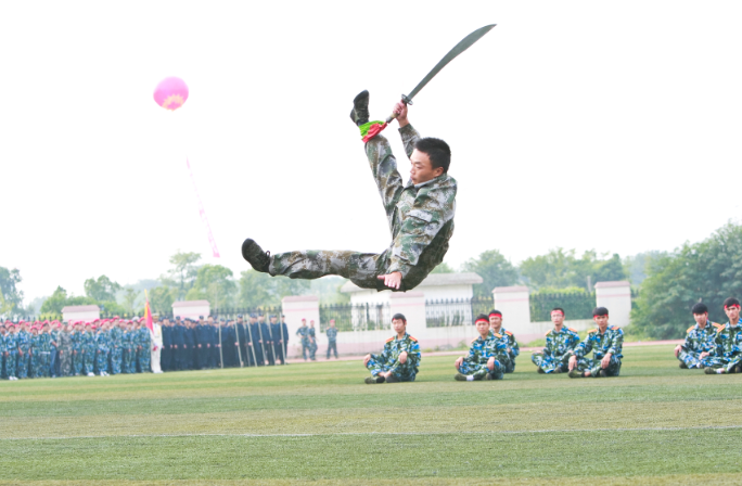 2012年9月28日,东校区军训演练大操场,曾经数次拍摄军训演练的吴强经历了最有“神”的时刻。当天,大学生表演剑术时,腾跃轻盈如燕,刀剑气势如虹。“在我摄影的潜意识里,预感到能出一张精彩的好片子,脑海中已经预设好画面的大致效果。”吴强走到舞剑学生的左侧,相机贴近地面,等待最佳瞬间出现。当学生剑舞腾空的刹那,吴强连拍数张,定格了最美的身姿。画面中生动活泼的舞剑形象很好的表述了大学生英勇果断,敢于亮剑思想主题,这幅作品在年度全国高校好新闻评比中荣获一等奖。