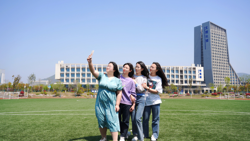 在江科大长山校区图书馆6楼,大家目标都是考研上岸。“人的注意力也不是一直集中的,有时候学累了,你抬个头,就像可能认识的女生就坐在前面,不小心对视上了,不好意思笑一笑,就这样一来一往,考研那一帮人前前后后都熟了。”每当学累了学不下去的时候,还有吃完饭的半小时,4个女生会一起散步,去校园海韵湖享受长山的风。