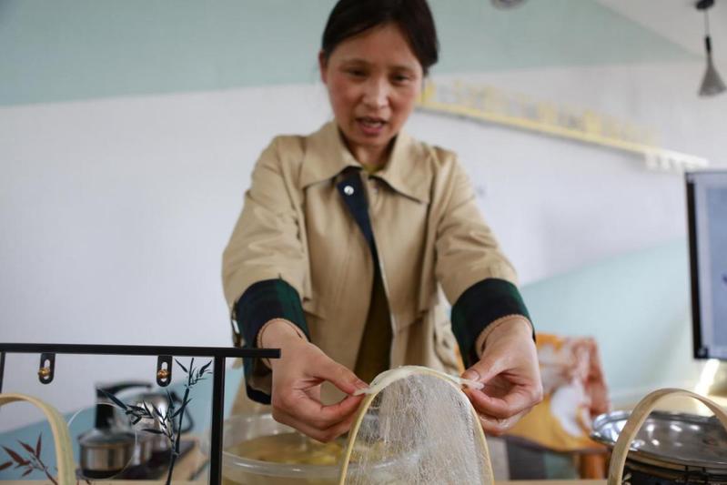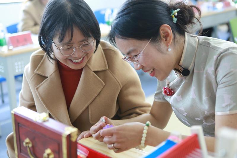 “听蚕桑故事,体验手作丝绵”“缫彩色蚕茧,制作胸针团扇”“穿经典旗袍,打卡最美身影”“品桑叶茶汤,共叙美好情谊”……活动现场对一体式服务站空间进行了灵活布置,分区域提供传统文化和生活美学现场体验。来自生物技术学院的副教授闻燕博士向现场与会者充分展示了学校“船舶、蚕桑、海洋”三大办学特色之一的“蚕桑”传统文化魅力。剥茧、煮茧、缫丝、开绵、编制,亲手将一根根晶莹剔透的蚕丝通过传统工艺手法变成精美的文创作品,现场参与者在时光中拾取非遗文化温暖的光芒,感受到了守护传统文化的意义和价值,进一步树立了文化自信,丰富了未来建设女职工康乃馨服务站的视角,深感收获满满,不虚此行。