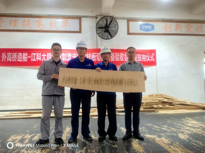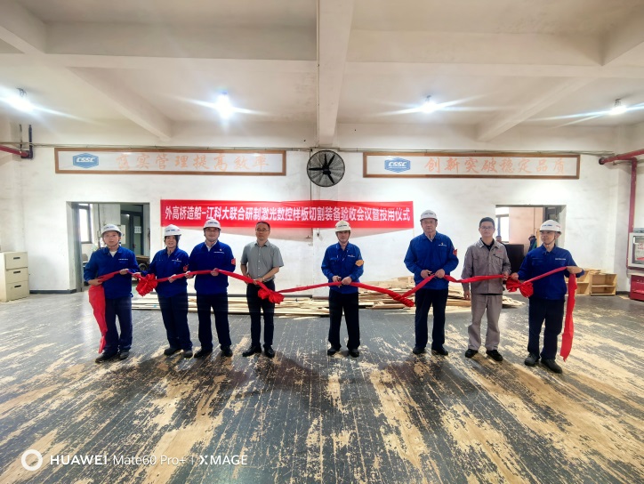 7月10日,由海洋装备研究院承制的激光数控样板切割装备在上海外高桥造船有限公司完成验收并正式投入使用。上海外高桥造船有限公司总工艺师刘建峰、设计一部副部长马涛、生产保障部副部长顾颂英、精度部副部长孙建志,海洋装备研究院院长谷家扬,以及双方技术人员出席本次验收会。