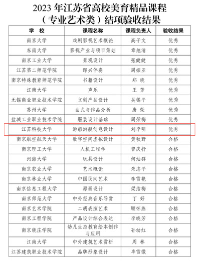 近日,省教育厅对 2023 年省高校美育精品课程(专业艺术类)建设进行了结题验收,德赢官网机械工程学院刘李明副教授负责的《游船游艇创意设计》课程结题验收获“优秀”等次,全省共30项通过结题验收,其中优秀项目10项。