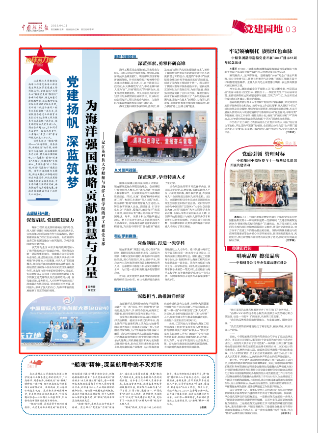 支部教师党员积极响应海洋强国和共建“一带一路”倡议,充分利用“校企”联动发展,发挥产、学、研结合优势,在海洋工程装备、海洋资源开发等方面聚力作为。