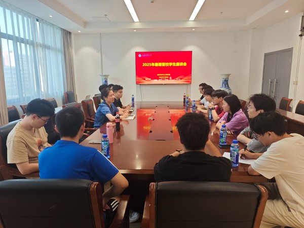 7月9日,学院召开暑期留校学生座谈会,院党委副书记杨海涛、辅导员汪孟超与留校考研学子面对面交流,并为大家送上清凉饮品,在炎炎夏日传递学院的贴心关怀。座谈会上,杨海涛认真倾听同学们当前的复习进度以及所面临的难题,针对大家遇到的问题一一解答,并暖心叮嘱:“学院永远是你们坚实的后盾,若遇到任何问题,可随时联系,我们会为大家的备考之路保驾护航。”